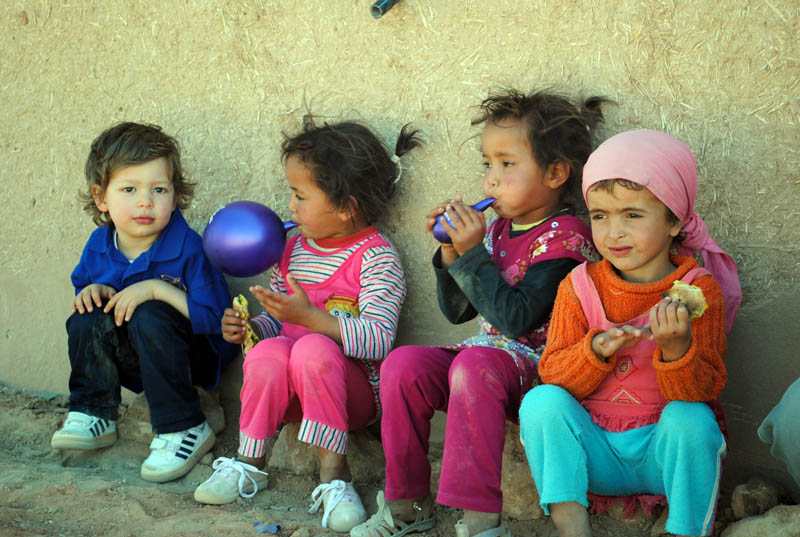Al llegar, observamos que había más coches en la aldea. Habíamos hablado de comer allí con el grupo de Gallegos que había con Jordi, pero pronto nos dimos cuenta de que eran los del Desierto de los Niños. Está claro que para coincidir, lo mejor es no buscarlo… de modo que en el cole se formó un pequeño barullo de turistas, y hubimos de esperar un poco para estar más tranquilos antes de hacer lo nuestro; entonces, expliqué a los chavales que traía libretas con dibujos a modo de mensaje visual de mis alumnos, para que ellos hiciesen lo propio describiendo su entorno a los de España. Y así echamos un ratejo, del que me traigo unos dibujos fenomenales.