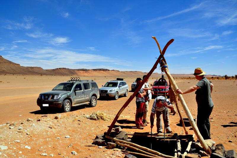 Después… el valle del Ziz, las primeras comidas en ruta, los palmerales, los pueblos rojos… de 2 a 28 grados el mismo día. Paisajes y experiencias que ya se nos hacían habituales pero no por ello dejábamos de disfrutar. Luego la parada obligada en el Geiser, para hacernos fotos y ver la cara de sorpresa de los nuevos. Tras la parada acudimos a nuestra cita con el padre de Hassan de Erg Chebbi, Said.