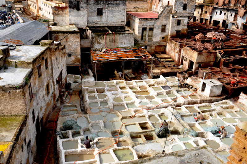 Antes de partir de Fes, nos quedaba una cuenta pendiente: pasarnos por el zoco de los curtidores. El día anterior, viernes, estuvieron cerradas las tiendas que daban acceso a las vistas, de modo que lo pospusimos a la mañana del sábado, sacrificando un ratito de Chefchaouen. Y esta vez fuimos a la primera. Ya nos habíamos hecho a los puntos clave de la median, plazas y puertas, y teníamos localizada la zona de los curtidores desde el día anterior, aunque no faltaron las explicaciones del cortés casero. De modo que dejamos el equipaje concentrado para que pudiesen ir haciendo las habitaciones, y salimos a ver, oír y tocar la medina.