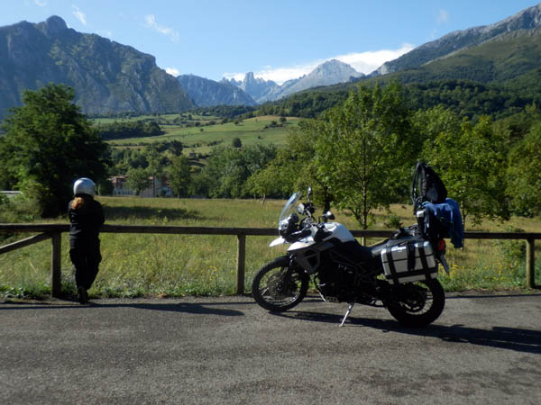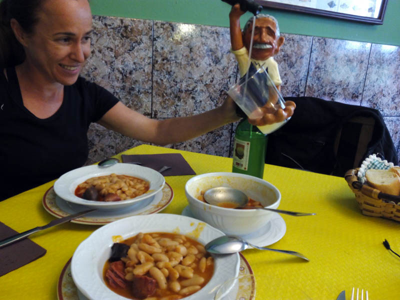 Luis nos había recomendado un sitio para comer en una de las aldeas que circundan el parque natural de Picos, y allí que fuimos a comprobar una vez más que no hay jornada en Asturias que no termine en comilona. Salimos de allí rodando (no en moto, sino como peonzas, y nos dedicamos básicamente a pasar la tarde haciendo la digestión entre moto y paseos, el último a una sidrería cercana al camping. Esa noche sí que llovió, pero nos pilló dentro de la tienda.