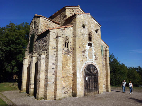 Por la mañana tuvimos una niebla de narices que le daba a los puertos un aspecto encantador, pero que obligaba a extremar las precauciones al manillar. Aun así llegamos a buena hora a nuestra actividad reina del día: Hacer la Senda del Oso en Bici. Y la disfrutamos como enanos. Primero subiendo y viendo al famoso palmípedo a su hora de almorzar. Luego, comiendo en la cabecera del recorrido. Y finalmente dejándonos bajar para hacer lo propio con los excesos hasta el inicio. Desde allí hasta Oviedo había un salto, que dimos para ver Santa María del Naranco y San Miguel de Lillo y luego encontrarnos con un nuevo fichaje al que debemos la más exquisita de las hospitalidades junto a su mujer: Javier.