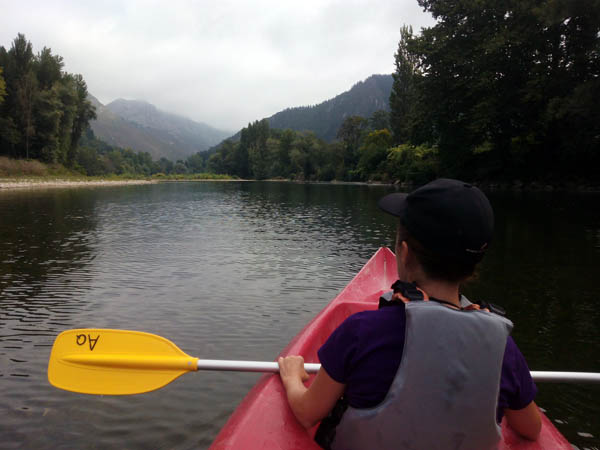 Salimos bien temprano de Oviedo coordinados con la hora de marchar al trabajo de nuestros anfitriones, con el río Sella por destino. Allí nos esperaba uno de los platos fuertes de nuestro recorrido, el Descenso. Cogimos la piragua donde nos recomendó Manel, un poco «barco», pero la pericia de los remeros compensó con creces lo dilatado de la embarcación, marcando unos pasos que ya hubiesen querido alguno de los que navegaban aquella concurrida mañana por el cauce. Tras el buen rato de remo, nos zampamos un gran bocata en un área recreativo próxima a la empresa de piragüas. Nos vino bastante bien que contasen con taquillas, duchas y vestuarios, pues la indumentaria de moto a veces necesita de estos cables para ir disfrazándose de paisano de vez en cuando, o simplemente comer cómodo.