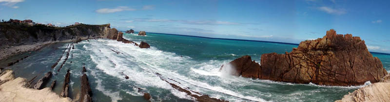 La tarde anterior nos habían recomendado ver una zona de playas en la oficina de turismo, y nos llegamos hasta ellas intentando mantenernos próximos al mar, pero nos fue imposible: no hay carretera que una todos los caminillos vecinales que salen hacia él. Una vez allí, estaban preparando el rodaje de un anuncio, pero pudimos contemplar la belleza y la bravura de un día en el que estaba claro que no nos íbamos a bañar, aunque mereció la pena a nivel fotográfico.