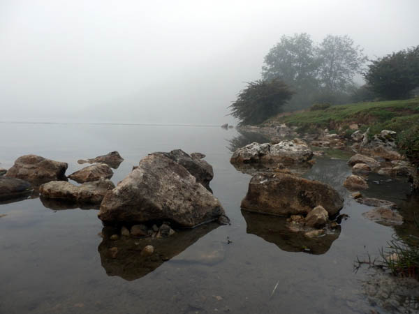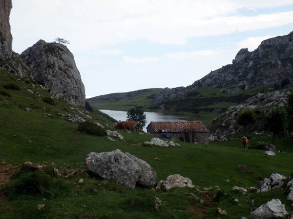 Hicimos nuestro pateo, que pasaba por un pequeño bosque tupido precioso, y acababa a orillas del lago de la Ercina, en una cabaña en la que una abuelilla hacía quesos de vaca al increíble precio de 35 € el kilo… aquí en el sur somos un poco menos exclusivos con estas cosas artesanales, al menos a pie de fábrica. Sobre todo cuando al parecer no era oro todo lo que relucía… y la leche venía de fuera. Lo curioso fue comprobar cómo al volver los lagos se llenaban de autobuses de turistas no-madrugadores, y loo que es peor, las nubes volvían a cubrirlos cerrando el paréntesis que nos habían dado, por lo que la bajada fue de lo más divertida entre curvas, vehículos pesados, vacas que se cruzaban… no hay nada como viajar en moto.