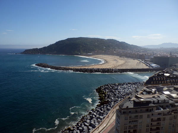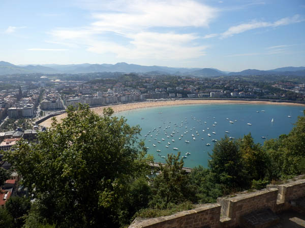 Haber planificado un día entero para San Sebastián fue un acierto, porque daba para eso y para más. Decidimos comenzarlo subiendo a la fortaleza para contemplar desde allí las vistas y hacernos una idea de la orografía de la ciudad. Luego descendimos de nuevo al casco antiguo para seguir recorriéndolo, y a la hora de comer «sufrimos» el haber buscado un sitio diferente del de la noche anterior, porque allí parece que lo que «pega» es el pincho caro, de modo que pagamos la primera ronda y volvimos al redil. Por la tarde, playa, ducha y más paseos, haciéndonos a la idea de que este largo y completo viaje iba tocando a su fin. Recorrimos esta vez la zona de la catedral, bajamos la ría y nos asomamos a la playa de la zona de Zurriola, viendo el desmadre del «palacio de la música» que tienen allí montado, para finalmente y sin arriesgarnos, terminar cenando con nuestros amigos de los pinchos.
