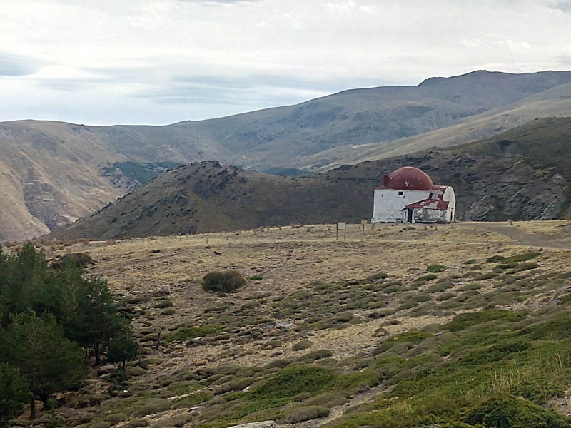 Esta mañana las nubes altas no nos han disuadido para subir por la «carretera de la sierra» hasta el cruce con el antiguo refugio de San Francisco, que desde 1920 se asoma al valle del río San Juan.