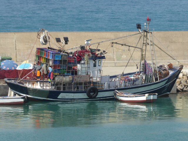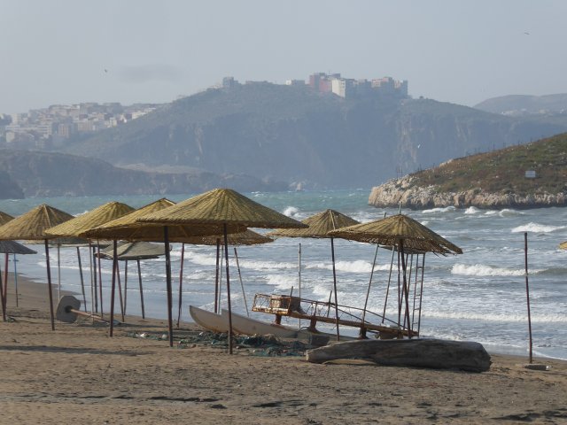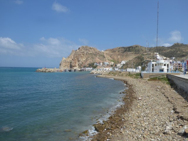 La salida de Tánger fue dura. Rachas de viento de 80 km/h en la moto te zarandean sin que lo puedas evitar, y eso, unido al tráfico local, no es divertido. Pero apenas salimos del área de influencia del estrecho, todo fue sobre ruedas. Poco tráfico, pueblos pesqueros a los que aún no ha llegado el turismo de masas, buen pescado… Paramos a comer en El Jebha con buen tino, pues es una aldea en la que se hace etapa para «repostar fuerzas» en una curiosa ruta motera que discurre por Portugal, España y Marruecos, que desconocíamos. Luego un puerto y muchas más curvas hasta Alhucemas.