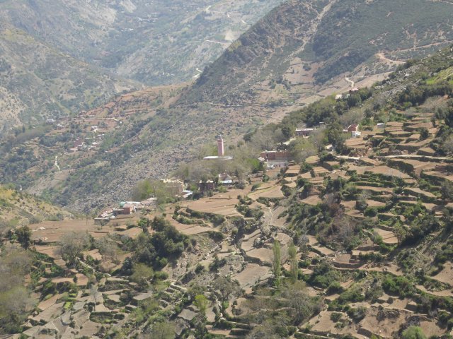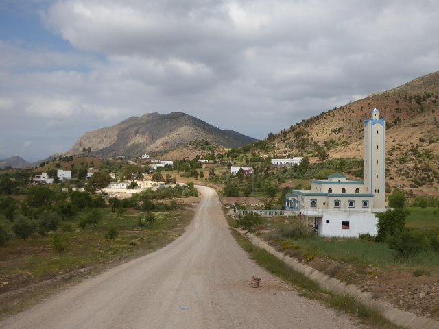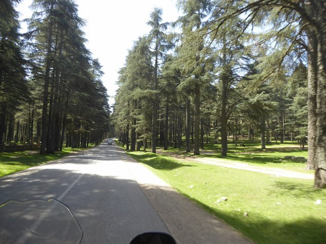 Explotada la costa, el Lunes teníamos en el planning programada la visita a la zona interior de Issaguen y Ketama. Por carreteras de montaña fuimos ascendiendo hasta cotas de 1600 metros y bosques de cedros salpicados de aldeitas desordenadas y en las que sus pobladores no parecían apreciar demasiado el entorno que tenían. Tomamos un te en Ketama, y allí decidimos, ya que estábamos aún frescos y entusiasmados con las curvas, hacer un círculo para regresar por un valle distinto, alargando el track casi 100 kms. Comimos en una aldea al paso, unas brasas de kefta, un guiso de manitas con garbanzos y patatas fritas. Y seguimos serpenteando hasta iniciar la bajada del trayecto común con la ida. Otro te, y hasta Alhucemas, compartiendo los últimos kms con un pequeño tour ciclista.
