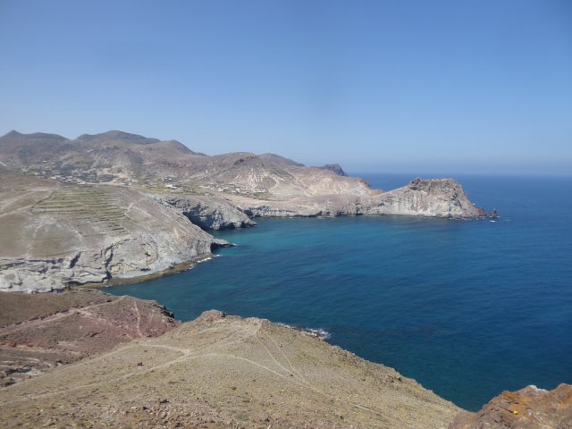 De allí fuimos a Cala Iris, un enclave precioso que no podíamos evitar imaginar lleno de urbanizaciones y turismo en el futuro. Ojalá se libre… En verano habría allí más bullicio, pero en Abril solo había un chiringuito abierto en el que comimos pescado local fresco, a la plancha.