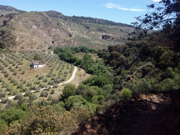 Hoy hemos dado un bonito paseo por el valle del Río Darro, desde el Parque de Invierno, en Granada. El inicio lo hemos fijado en el Algibe del Agua, un poco más arriba del Cementerio de San José. A partir de ese punto hemos de buscar el valle del citado río, por el que discurren varias veredas paralelas, de las que tendremos que buscar la intermedia, pues más baja antes del cauce nos llevará a este antes de tiempo, y la más alta nos devolverá al Parque. Más adelante nos tocará cruzar el río en varias ocasiones hasta llegar al Cortijo de Jesús del Valle, una gran construcción abandonada con un siglo de antigüedad. Desde ahí subiremos zigzagueando a la parte alta de nuevo por la ladera sur del valle hasta llegar a la meseta y cerrar el círculo.
