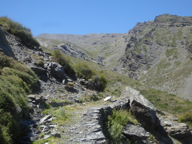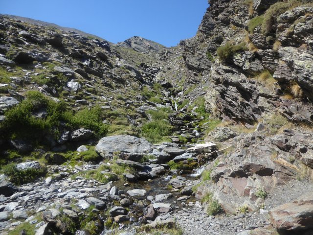 Hoy hemos hecho una excursión desde el Albergue de San Francisco en Sierra Nevada, pasado Pradollano y un par de kilómetros antes de llegar a la Olla de la Mora. Es un recorrido de media-alta montaña, por encima de los 2000 MT de altitud, que resulta cómodo porque no presenta demasiado desnivel y porque está relativamente montado. No obstante, los 12 kilómetros y lo pedregoso del terreno, exigen un mínimo de forma física.