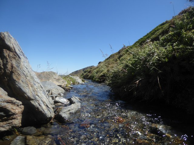El track en principio es lineal, pero podemos hacerlo circular bajando y subiendo del valle siguiendo la vereda baja que cierra la V, en cuyo caso tendremos luego una buena subida.