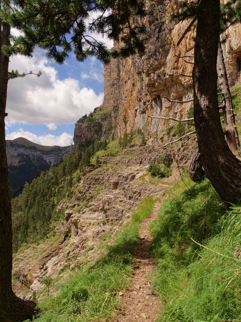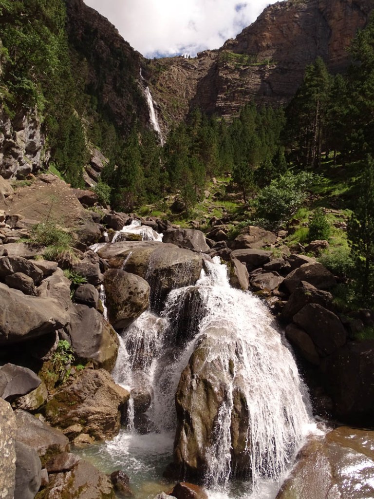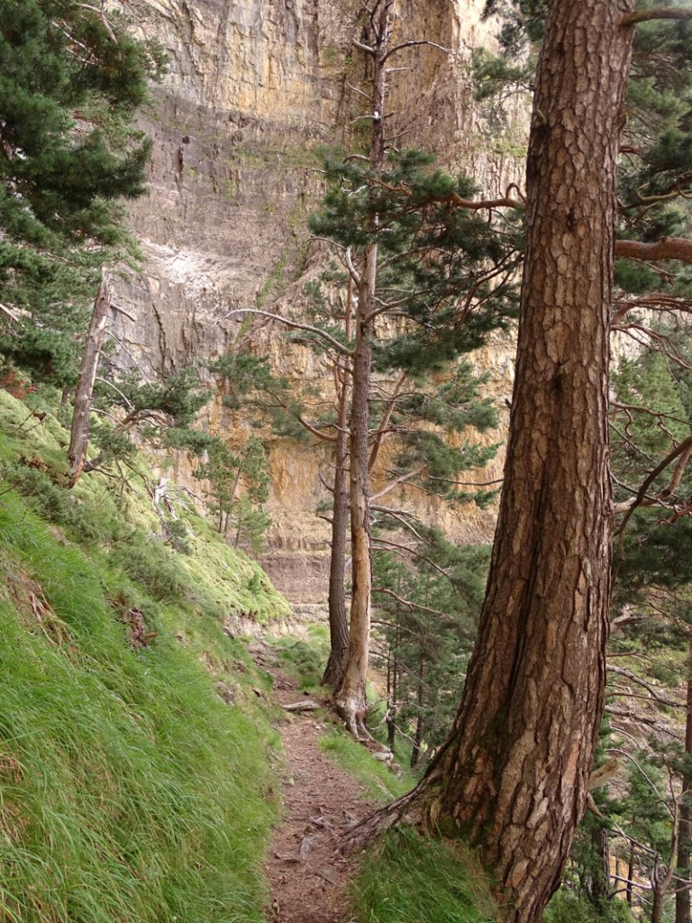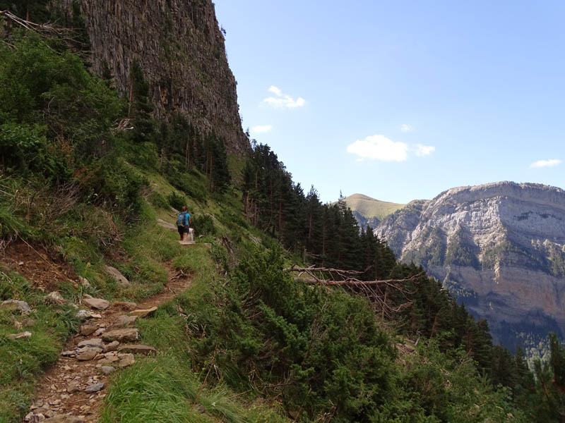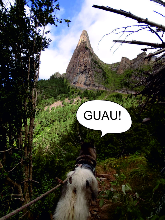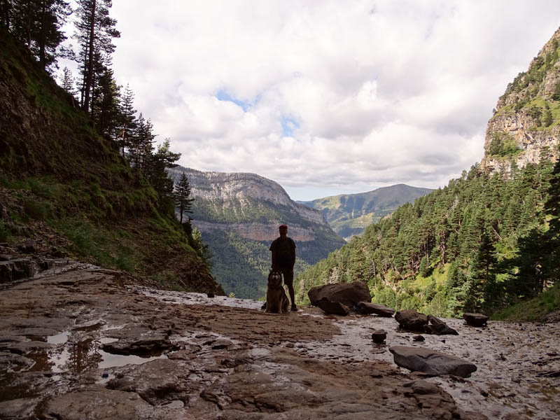 La tercera excursión por Ordesa volvía a partir de la Pradera, por lo que una vez más, Sialuk se tuvo que meter en el transportín de la bodega del autobús. No le gustaba demasiado, pero parecía que había asumido que eso nos llevaba a parajes increíbles, y lo aceptaba. Eso sí, salía como las balas cuando le abríamos al llegar. Y con la misma inercia con la que ella abandonó el autobús, empezamos la subida, tras retroceder un poco hasta la casa de piedra que hay junto a la carretera. Allí está todo muy señalizado, así que es difícil perderse.