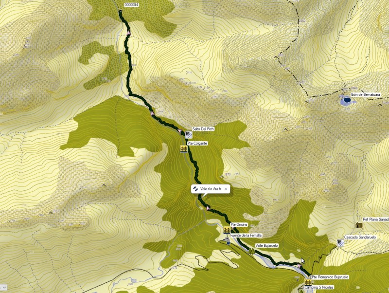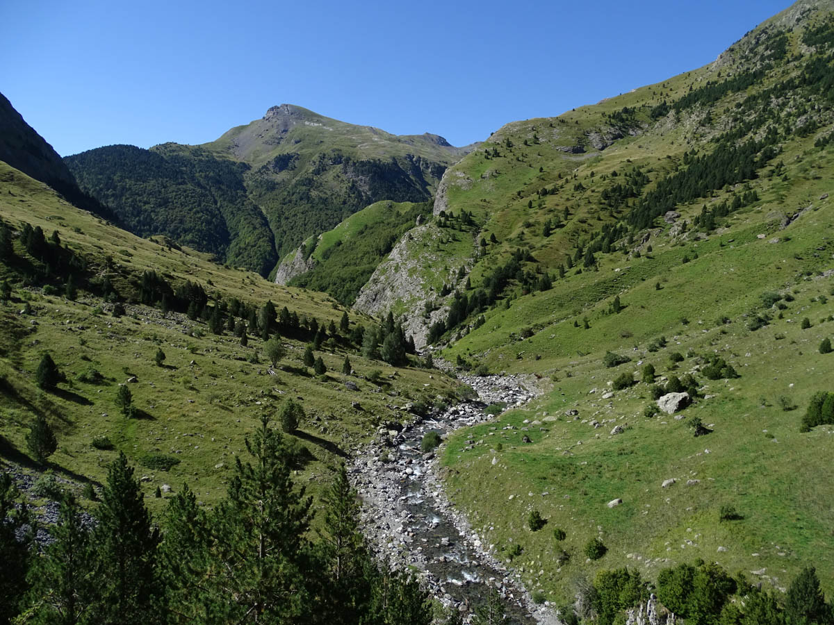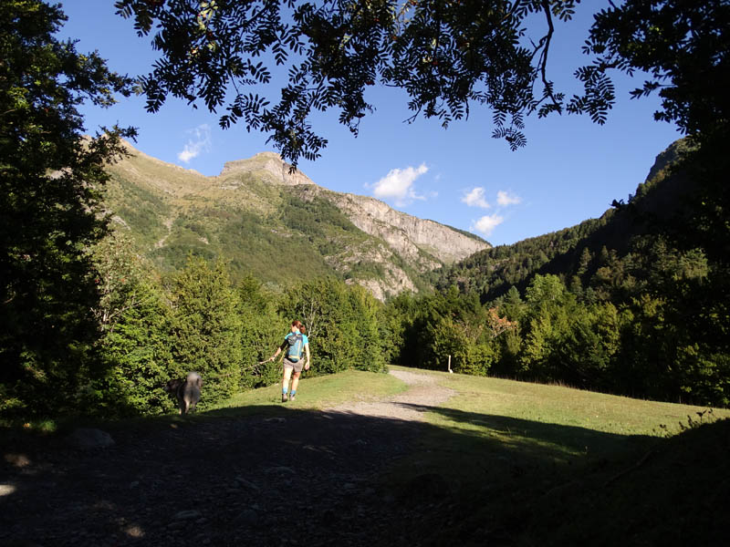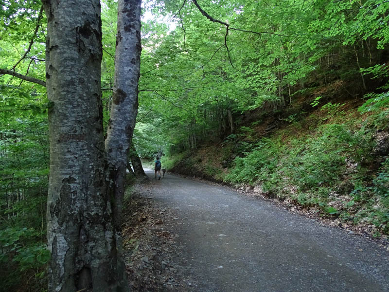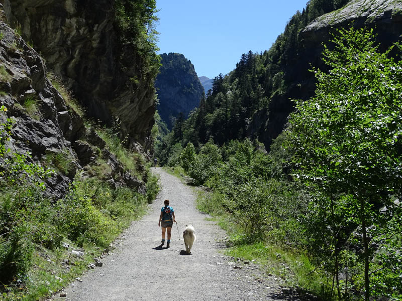 Salimos del camping de la explanada de Bujaruelo por la orilla derecha, es decir, la contraria a la que pisamos el día anterior hacia el río Otal. A diferencia de aquella, que tiene una cómoda pista apta para coches, en la vertiente Este tenemos una bonita vereda que da acceso a varias pozas del río, en las que nos acostumbramos pronto a pasar las tardes entre el agua y el césped. Pero vereda y pista se encuentran a partir del puente de Oncins. De modo que a partir de este punto iniciamos una subida entre hayas realmente bonita.