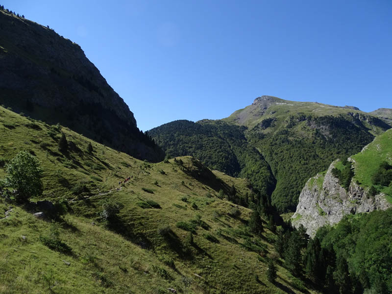 La subida se prolonga hasta llegar a un refugio de pastores con unas magníficas vistas, en un collado confluencia de dos valles. Nosotros seguiremos a la derecha por el del Ara, pasando ya a vereda, que en este caso recoge el GR-11, que viene de Francia.