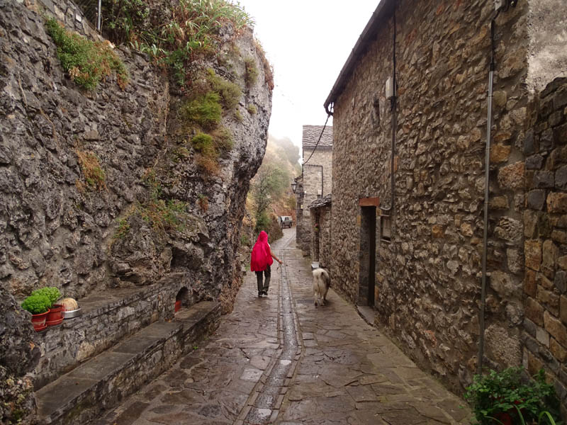 Llaman a Tella «el pueblo de las brujas». Y es que en estos parajes abundaron hace siglos personas y tradiciones que nutrieron este tipo de creencias. Está al Oeste de la carretera que va desde Aínsa hasta Francia. Para llegar debemos subir un bonito puerto de Montaña que nos depara alguna sorpresa más que desvelaré mañana. En sí, es un pueblo típico pirenaico, todo de piedra, que guarda el sabor del medievo en sus calles gracias a que se ha respetado su origen. Pero además, ha debido ser durante tiempo un enclave poblado, como demuestra la existencia de dólmenes en sus alrededores.