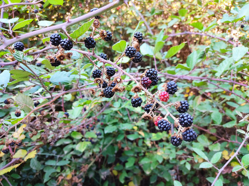Otra de las consecuencias de la época del año fue la eclosión de moras de zarza, riquísimas, de las que comimos hasta casi enfermar, y con las que además hicimos una mermelada que todavía anda por el frigo…