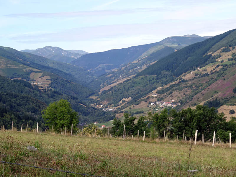 Cangas del Narcea. Hemos empezado las excursiones de nuestra Astur-Leonesa en Cangas del Narcea, junto a un buen puñado de amigos. Y la primera ha sido esta bonita subida, con desnivel relativamente fuerte, para calentar motores. la ruta sale de la zona de molinos antiguos que hay en el extremo Sur de Cangas. Allí cruzamos el río y seguimos el camino que asciende la ladera cubriendo un buen desnivel en pocos kilómetros. Luego, se irán sucediendo las capillas que dan nombre a la ruta mientras nos mantenemos en la divisoria. Nos mantendremos en la pista hasta girar hacia el Este en el momento en que divisamos la más bonita de ellas y que aparece en la foto de esta entrada. Ese es un buen sitio para almorzar a la sombra de unos alces.