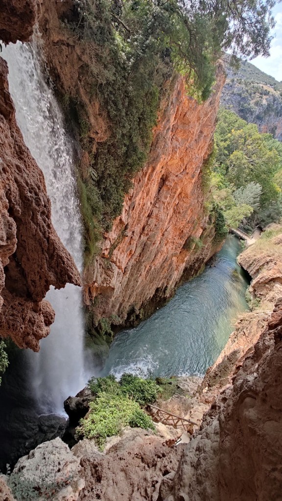 Para los que no hayan estado, se trata de un recorrido entre cascadas del Rio Piedra regulado por el Embalse de la Tranquera, al suroeste de Calatayud. Allí, trece monjes cistercienses fundaron un monasterio hace más de 800 años, lo cual explica en parte el tamaño de algunos ejemplares de árboles. Desde entonces y hasta el s XVIII se sucede la construcción de edificios que van del románico al barroco, y entre los que destaca un bonito claustro. Pero lo mejor son los jardines y lagos, franqueados por cascadas impresionantes. Imagino que quienes llegaron aquí por primera vez se quedaron maravillados y por eso varios monarcas han financiado sus construcciones para venir aquí de retiro «espiritual».