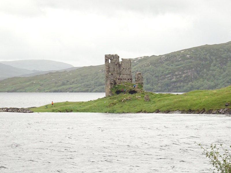Adverck Castle, el el Loch Assynt. Un curioso castillo al que hay que llegar mojándose los piés.