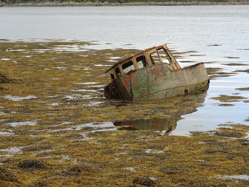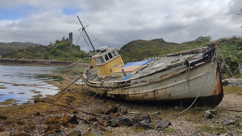 Para acceder a él había que seguir una pequeña vereda salpicada de barcos naufragados o abandonados, como ese junto a un viejo astillero. Luego seguimos avanzando hacia Portree, la ciudad más grande de la isla, haciendo paradas salpicadas por la geografía de su costa Este: