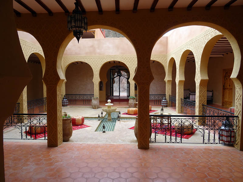 Como era temprano y queríamos comprar fruta y productos locales, echamos un rato vespertino por la calle comercial de la ciudad, antes de seguir hasta el hotel, que estaba en las afueras. Las habitaciones, estupendas, y la cena también muy rica con Harira, brochetas de pollo y fruta en un gran salón. Ahora sí que estábamos metidos de lleno en el ritmo del viaje.