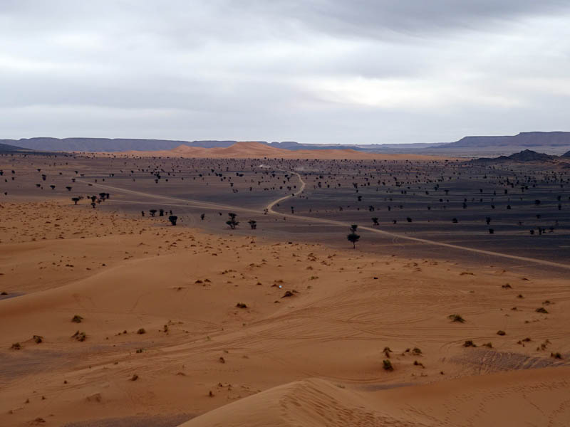 Nos levantamos tempranito con la incorporación del comando navarro, que había cruzado en exclusiva por Tánger y viajado de noche hasta Midelt. Cansados pero con ganas se incorporaron al grupo que ahora era de 4 coches. Y emprendimos la nacional en dirección Errachidia sin pausa y con un objetivo: que nos diera tiempo a hacer la pista del Dakar hasta Merdane, la casa de Abdul, donde nos esperaba el resto del grupo que había echado la mañana de dunas intensivas.