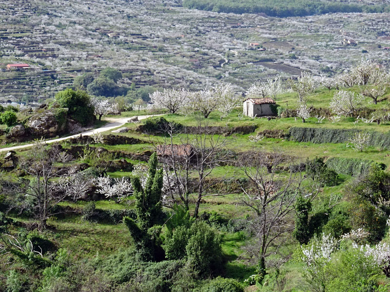 De las muchas rutas posibles allí hicimos solo dos, aunque bien podríamos haber hecho muchas más de haber tenido más tiempo. Lo mejor, es que pillamos el valle en el momento de mayor floración de cerezos, por lo que el blanco dominaba el valle por doquier.
