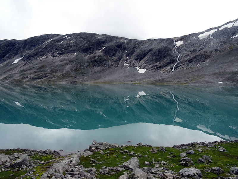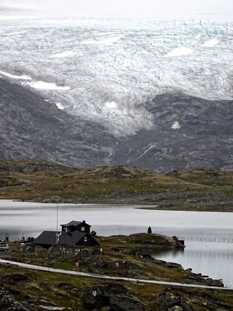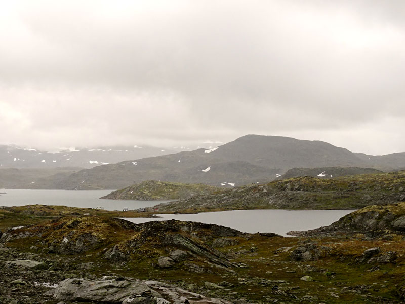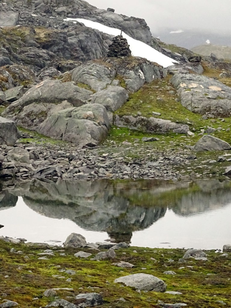 La carretera 15, desde Lom, hace marcadamente Oeste. Avanzados unos kilómetros, en Grotli, tomamos un desvío para recorrer la ruta panorámica Gamle Strynefjellet, una carretera de grava excavada en la roca que si destaca por algo es por el entorno en el que se desarrolla en su trascurrir hacia la cascada Videfossen. Los lagos glaciares en este punto, son verdaderos espejos que reflejan todo lo de alrededor, creando un escenario mágico que te corta la respiración.