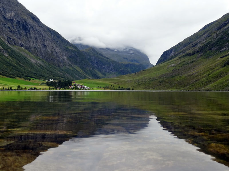 Después de aprovisionarnos, dejamos de hacer Norte por primera vez en las etapas del viaje, y emprendimos el «regreso» escalonadamente, en un primer término atravesando el fiordo Frei por un túnel bajo el agua. Finalmente, una tiradita de carretera por las orillas del fiordo Tingvoll nos llevaría a nuestro destino. Y es que leyendo la completísima página de Visitnorway me llamó la atención ver que recomendaban la visita del que decían era el valle más hermoso de Noruega, cosa que a poca gente parece llamarle la atención en un lugar en el que lo típico son los fiordos, por lo que decidimos ir a averiguar con nuestras experiencias más de montaña qué tal era.