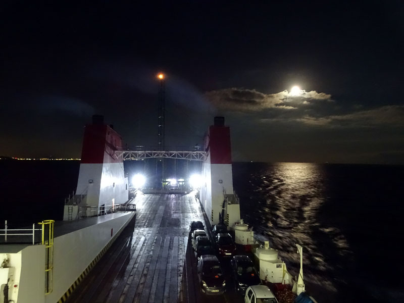 Era día 5 y tocaba ir en busca de la autopista para llegar hasta las afueras de Tánger, donde Carlos cogería taxi hasta el aeropuerto, y luego al puerto de Ténger Med. Paramos a comer en un área de Repos de la autopista, donde nos sirvieron unas hamburguesas en plan «prisamata», y nos despedimos del grandullón en el área hospitalaria de la ciudad. Luego, a la aduana… cambio de dirhams que nos habían sobrado, sacar billetes, y cola. Los papeles del coche relativamente rápido, pero el problema llegaba en la cola del puto escáner de coches. Como siempre, te preguntas cómo pueden ser tan desorganizados, tan repetitivos, tan celosos… y qué sentido tiene abrir el maletero 2 veces si ya te han pasado el perro y el escáner. En fin, más de 2 horas para salir, que nos hicieron llegar a la cola de embarque justo cuando cerraban las compuertas del barco. Lo que nos suponía esperar 3 horas más (además de la hora de retraso que ya llevaba el barco) en la noche de reyes, llegado a casa de Madrugada. Realmente merece la pena el ahorro de pasar por esta aduana infernal, cuando la cadencia entre barcos es de 3 horas? A mí no…