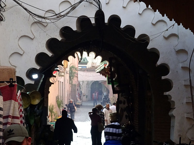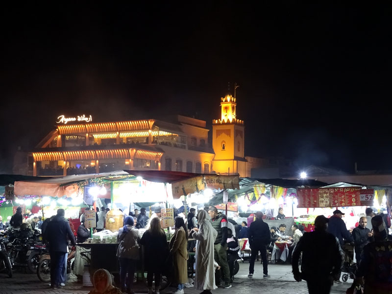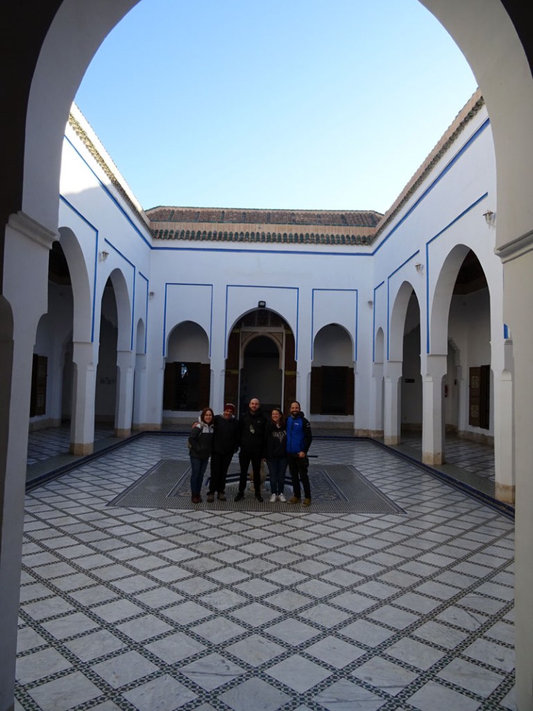 Fue la ciudad punto de encuentro, donde se unieron Borja y Elena, para darnos la gran sorpresa de que habían decidido compartir con nosotros un momento tan especial como su viaje de novios, y Carlos, que había bajado en Avión. Ya estaba el equipo al completo. La medina, sus tiendas, los puestos de comida y la palpitante plaza Djama el Fnaa pusieron el broche a la parte urbana del viaje. Las calles mucho más limpias, hay gente recogiendo basura y papeleras. Muchos menos moscones que otras veces. A la mañana del día 30 tocaba hacer Sur.