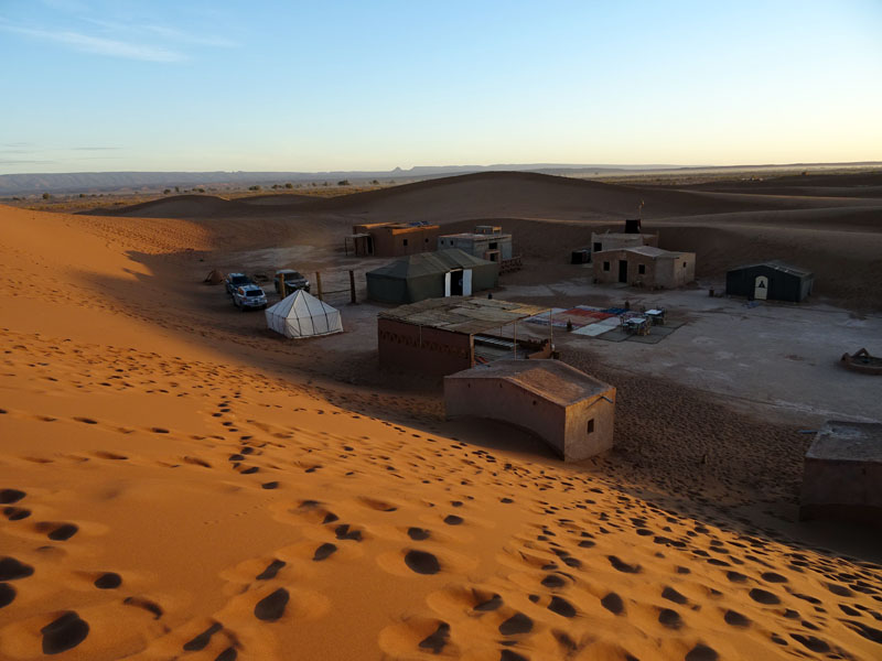 Cuando llegamos al campamento exhaustos tuve la sensación de que los alemanes que estaban allí reposando la cena nos miraban como a Robinson cuando fue rescatado. A lo mejor no habría sido tan mala idea contratar al habibi para que nos diese una vuelta guiada por las dunas…