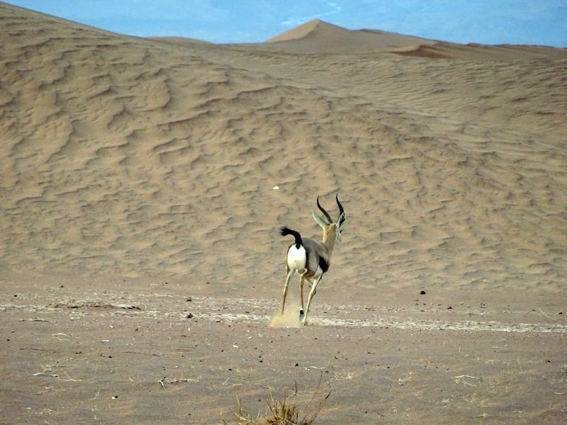 No obstante hubo también un momento «mágico», en el que una gacela nos escoltó durante un par de kilómetros, que creo que fueron en los que más avanzamos sin atranques. Luego, solo nos quedó la oscuridad y nuestros valientes guías que a base de linternas nos fueron marcando de zona dura en zona dura hasta que llegamos a la pista del río, entre gritos de júbilo. Llevábamos 2 horas duneando a oscuras.