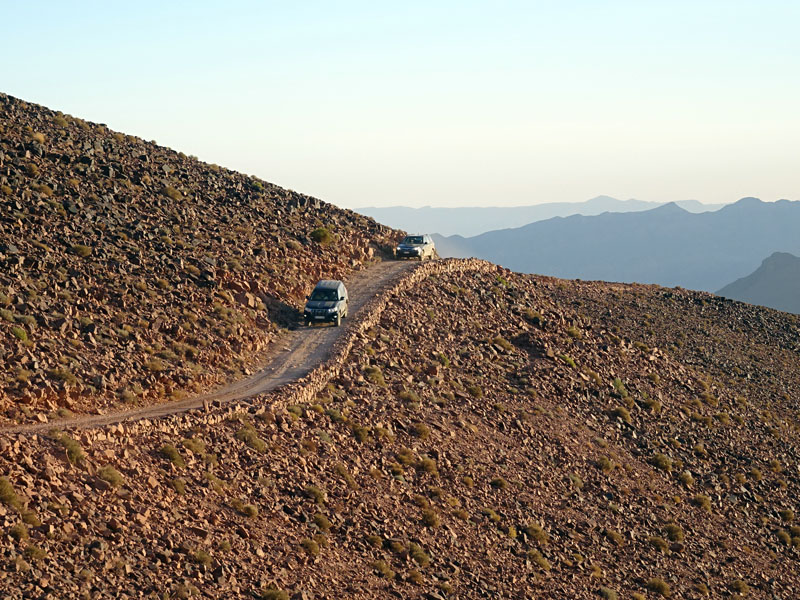Y ya era 3 de Enero. Yo había dormido regular, porque parece que el resfriado que traía Carlos se iba propagando por el grupo. Pero la adrenalina podía con todo. Salimos por la Kasbah Itrane por un valle realmente bello, haciendo norte y ganando altura, esta vez sin contratiempos, hasta llegar al asfalto que nos conduciría en la segunda mitad de la ruta hasta Zaouia.