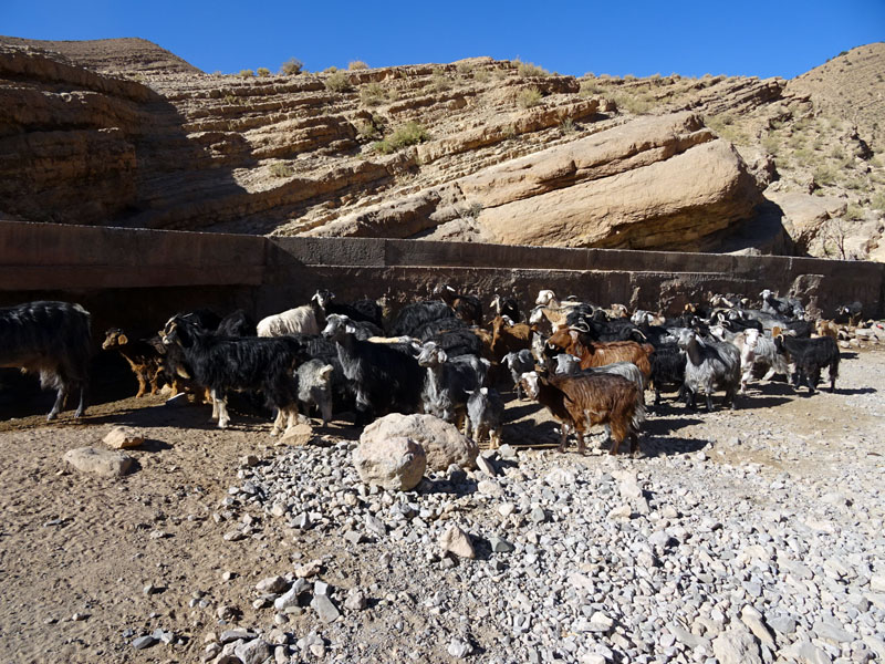 El día 31 la pista se tornó más pedregosa, llevándonos por al Oasis de Aguinane, un sitio espectacular metido en una garganta, donde han sabido aparcelar el terreno y aprovechar el agua para crear un verdadero oasis. Pena que no pudiésemos dormir aquí, pero otra vez será.