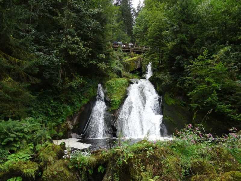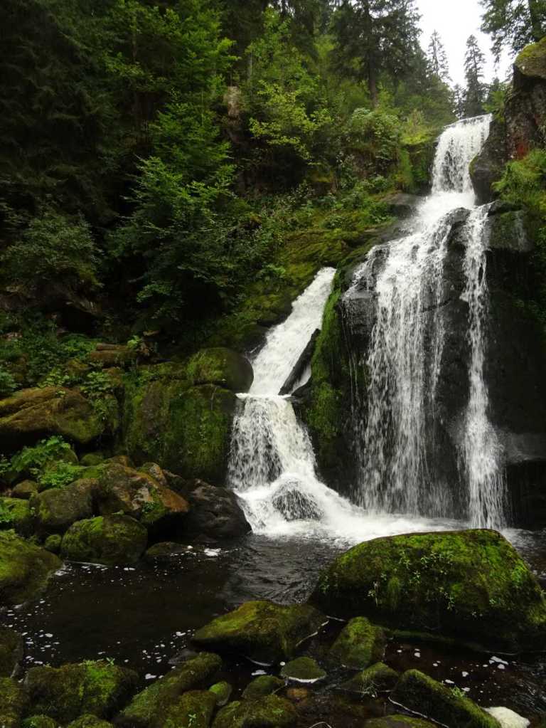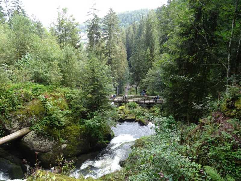 Después del Lago Titisee seguimos haciendo norte con la furgo hasta Triberg, a 60 kms. Justo antes de llegar al pueblo, empieza la ruta de las cascadas que caen en el pueblo desde allí, por lo que dicha ruta es una bajada a pie que va serpenteando en busca de captar las mejores imágenes de los saltos de agua. Tuvimos la suerte de poder aparcar, ya que una familia se iba a nuestra llegada, porque no es sencillo por lo turístico de el paraje y lo pequeño del aparcamiento.