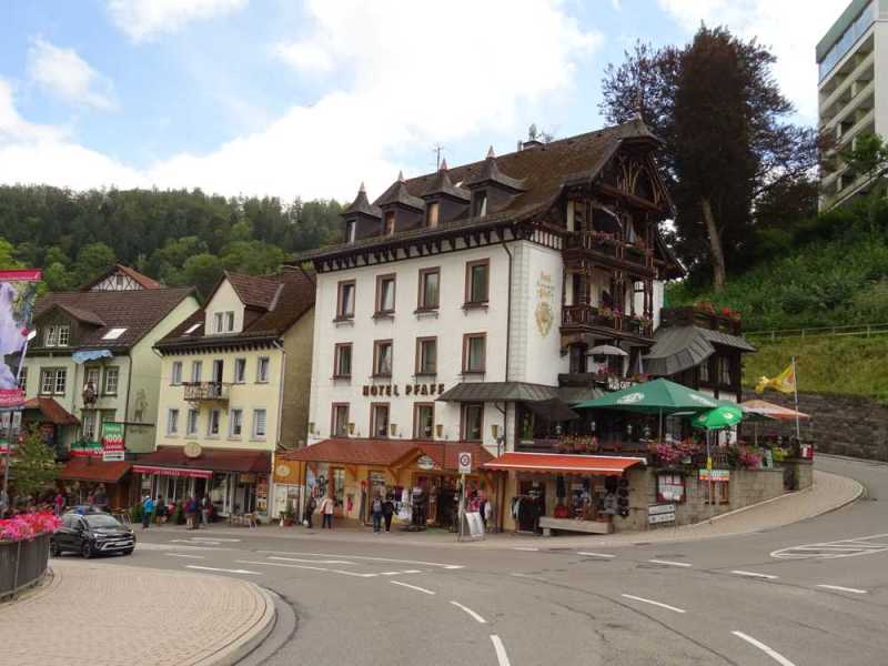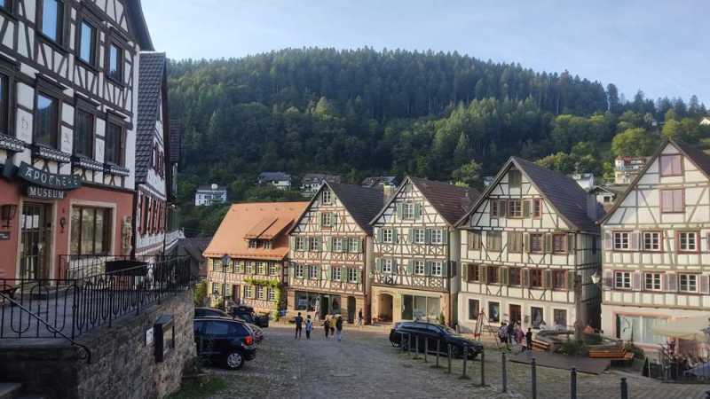 Oppenau sí que nos resultó un pueblo típico y auténtico. Sus casas, sobre todo en la zona de la plaza central, representan la arquitectura que uno espera encontrar en esas tierras, sin tantos aditivos ni escenarios. Además, los alrededores también acompañan, y el área de autocaravanas, junto al río, es muy agradables.