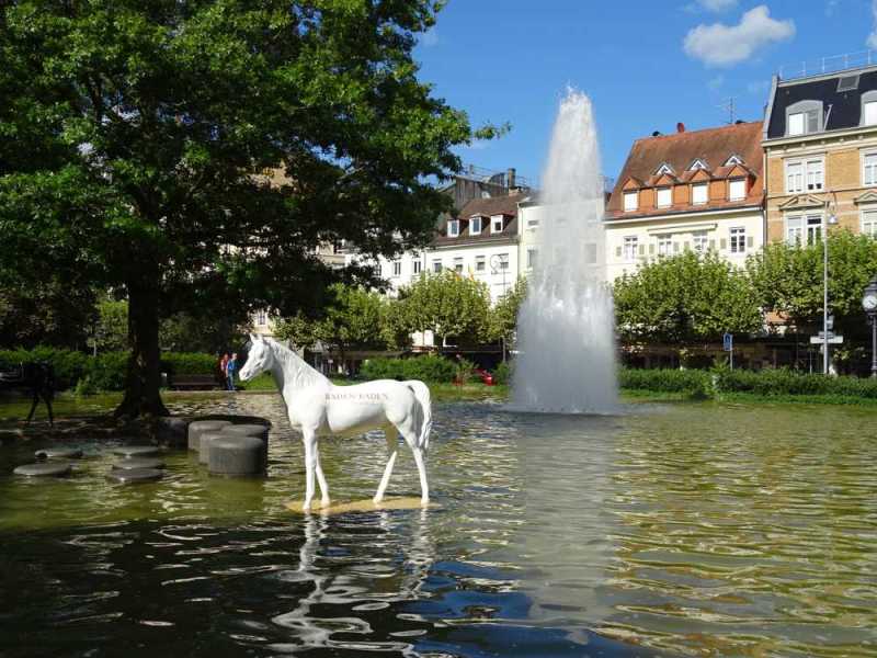 Bad significa Baño (termal). No se si Baden Baden será una forma de enfatizarlo, pero lo cierto es que allí ha habido baños termales desde tiempos romanos, cosa que ha traído prosperidad a la ciudad, que no siendo muy grande tiene un nivel de vida alto. A la vista está en la ópera, casino, balneario, y demás edificios. Una vez más nos beneficiamos de ser domingo para aparcar en pleno centro y recorrerla a pata sin complicaciones. Nos llamó la atención el montón de esculturas de caballos que había, el ambientazo, algunos coches que no se ven en cualquier sitio… y aquí sí tuvimos posibilidad de elegir entre varios sitios para cenar.