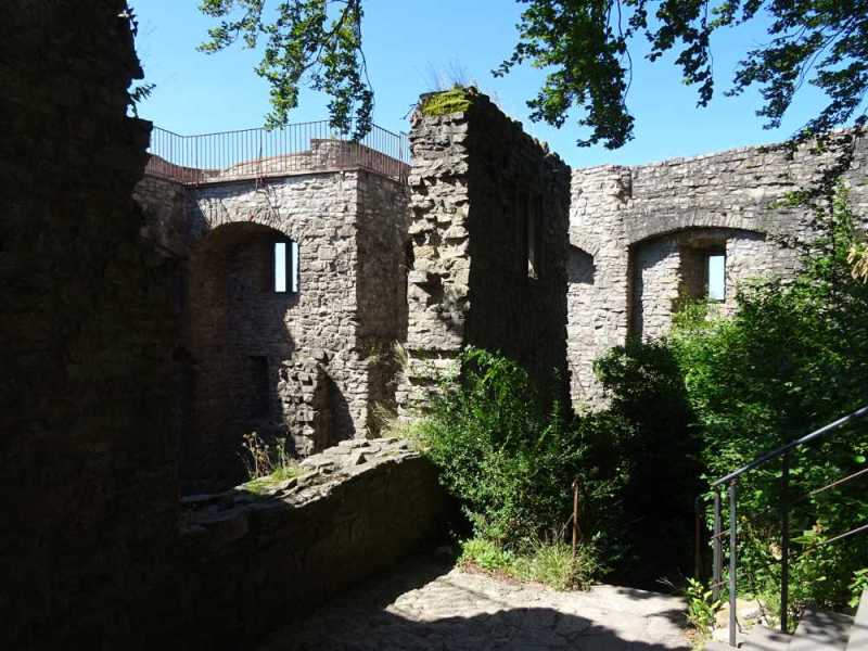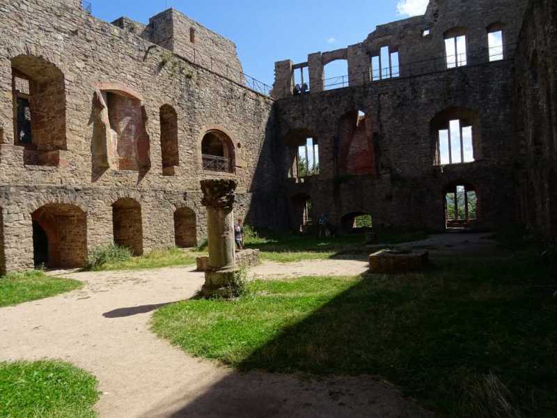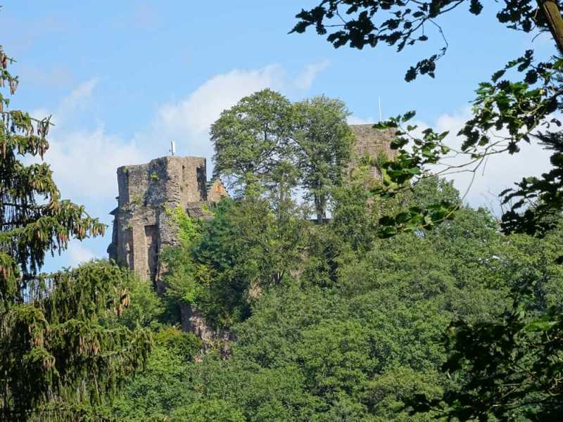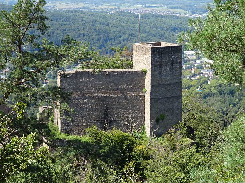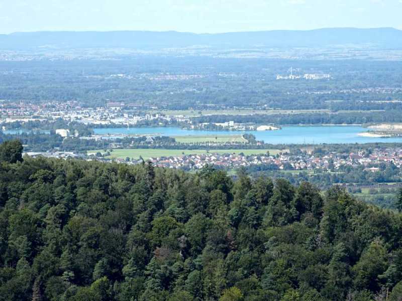 Tras visitar la ciudad escapamos a una urbanización de las afueras, y aparcamos en un descampado que servía de punto de inicio de esta ruta por estar al lado del castillo más próximo al núcleo urbano. Que además es el que permanece cerrado en la actualidad. Así que desde la fortaleza iniciamos nuestro camino siguiendo un track de Wikiloc que nos lleva hasta el segundo de los castillos, que sí es visitable y muestra unas vistas espectaculares, tanto hacia el Rin, al Oeste, como hacia el Este, donde se desarrolla la parte norte de la Selva Negra.