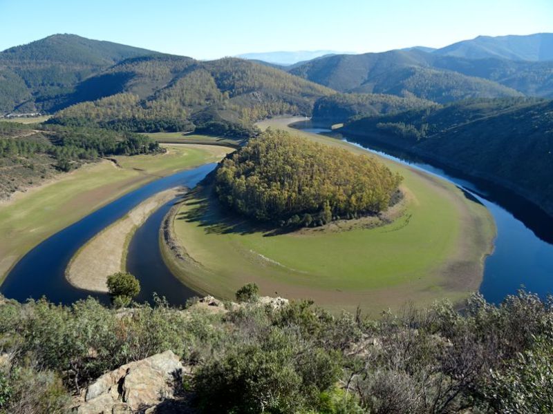 Nuñomoral era el pueblo con supermercado más cercano, y por el que pasamos más de una vez a proveernos de lo que nos faltaba. Y Vegas de Coria el más grande inmediato, con gasolinera y todo. Ya nos podemos hacer una idea de cómo son las cosas en Las Hurdes. A lo largo de nuestras excursiones, conocimos cosas tan curiosas como el Meandro del Melero, desde el Mirador de la Antigua, el Mirador del Chorro de los ángeles con su buitrera, el Pico de la Corredera…