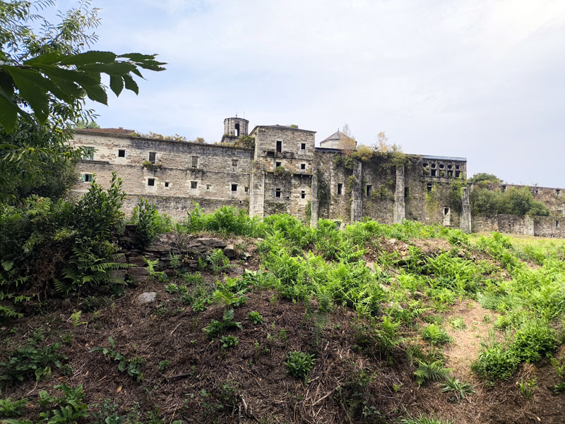 Antes de llegar, merece la pena acercarse al Monasterio de Santa María de Monfero, un gran edificio de piedra damado con plazas de pizarra, sobrio pero imponente, con un entorno privilegiado que comprende las antiguas tierras de labor, un arroyo y diversos senderos.