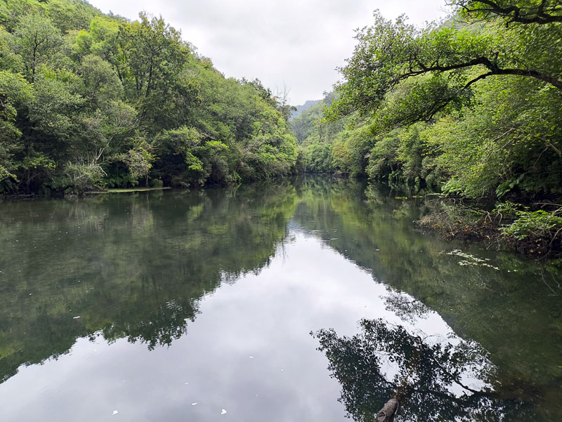 Un sitio al que le tenía ganas desde hace mucho años en Galicia, eran las Fragas del río Eume, un parque natural cercano a Ferrol en el que sumerges en la naturaleza sin anestesias. De camino, paramos en al lago de Puentes de García Rodríguez, junto a una térmica que contrasta bastante con le paisaje. En el embalse hay playa artificial y una zona en la que aparcan las autocaravanas.