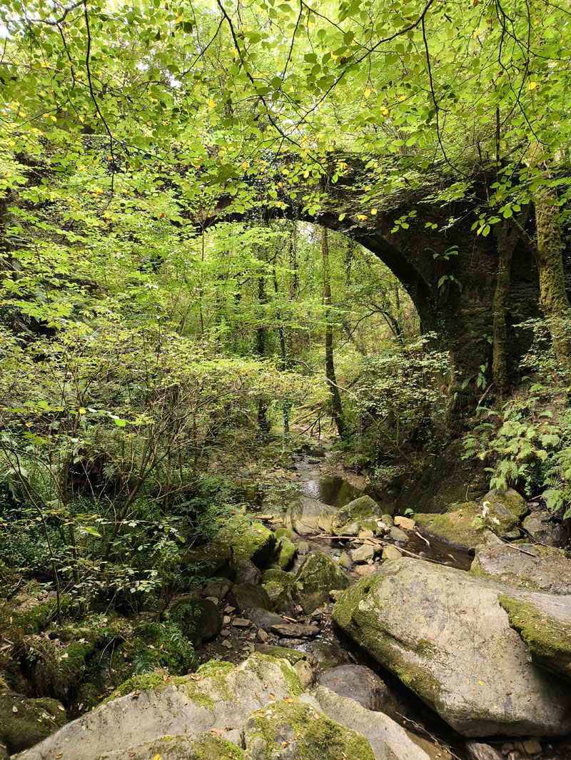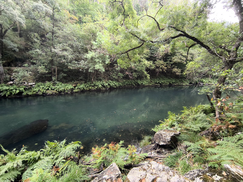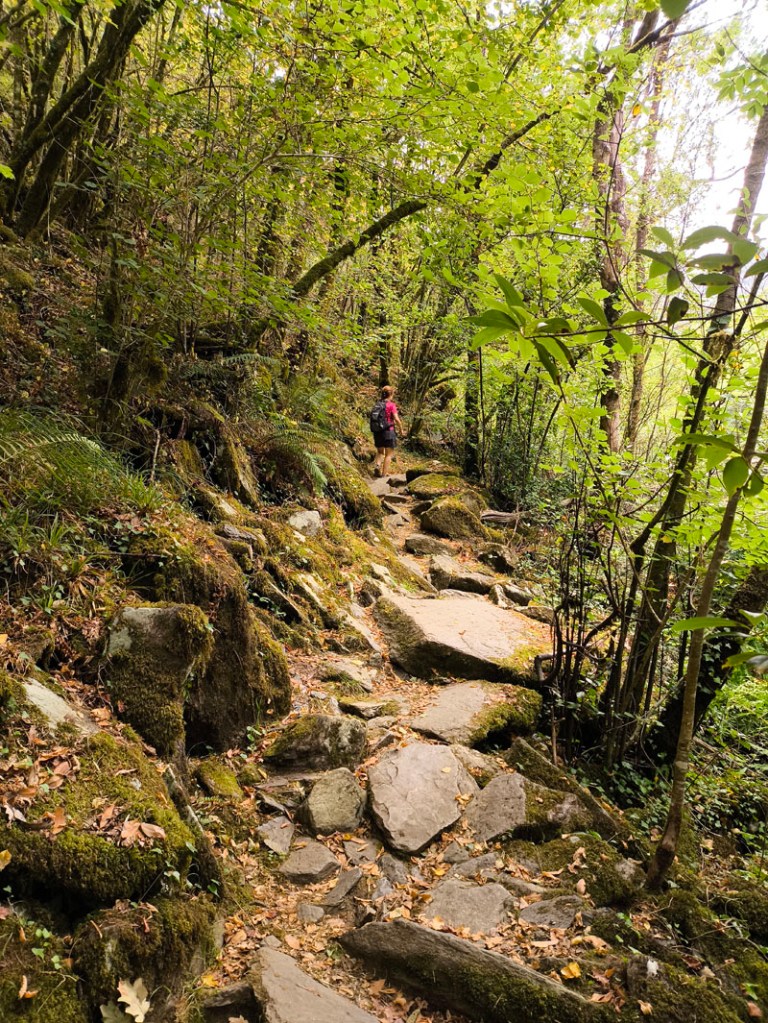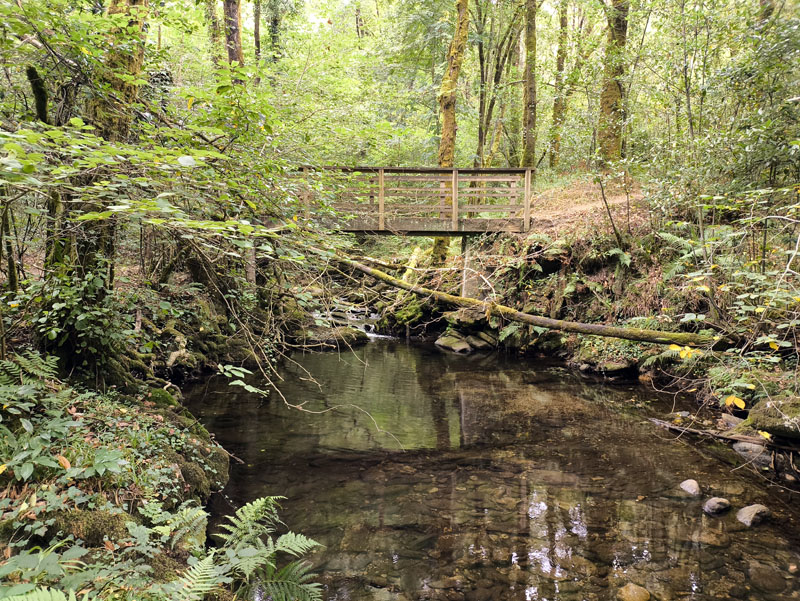 Para visitar las Fragas, decidimos hacer noche previa en el área de Autocaravanas que hay al sur, y que permite acceder andando al parque natural por una ruta amarilla -no exenta de desnivel, y no apta para todos los públicos, ojo- pero que permite recorrer parte del bosque y que si tenemos el tiempo suficiente (unas 4 horas con parada en el monasterio) merece mucho la pena. También hay otros accesos más cómodos e incluso autobús, pues hasta el corazón no se puede acceder en vehículo propio… pero no so lo mismo.